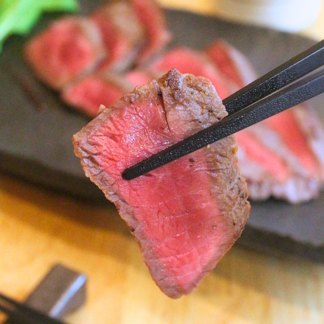 国産牛の赤身ステーキや焼きハラミを、火入れにこだわり“やさしい食感”に仕上げます。