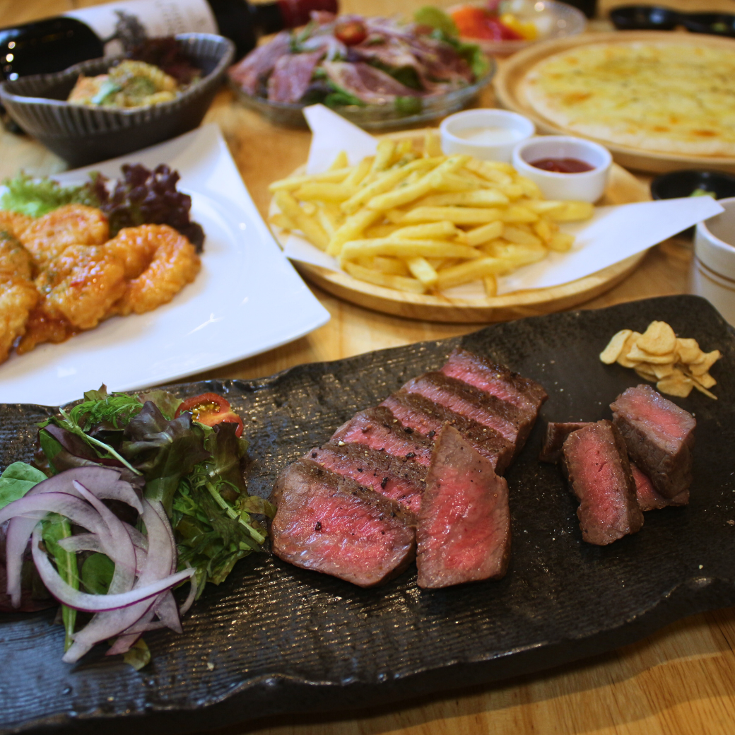 お昼の忘年会には、人気の「選べる贅沢肉ランチセット」がおすすめ。赤身ステーキやローストビーフなど、その日の気分でメインを選べる楽しさが好評です。