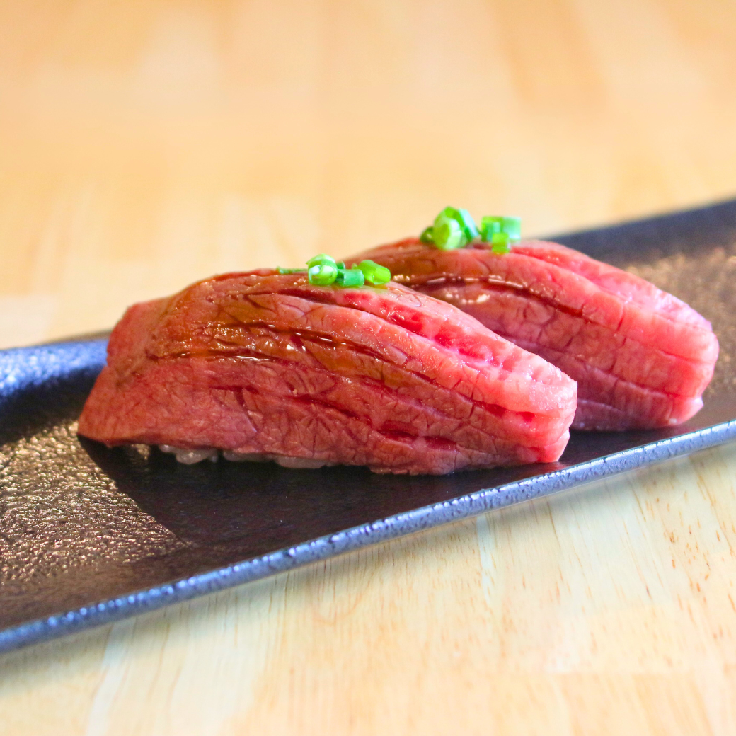 数ある当店の肉料理の中でも、特にリピーター様から愛されているのが「肉寿司」です。