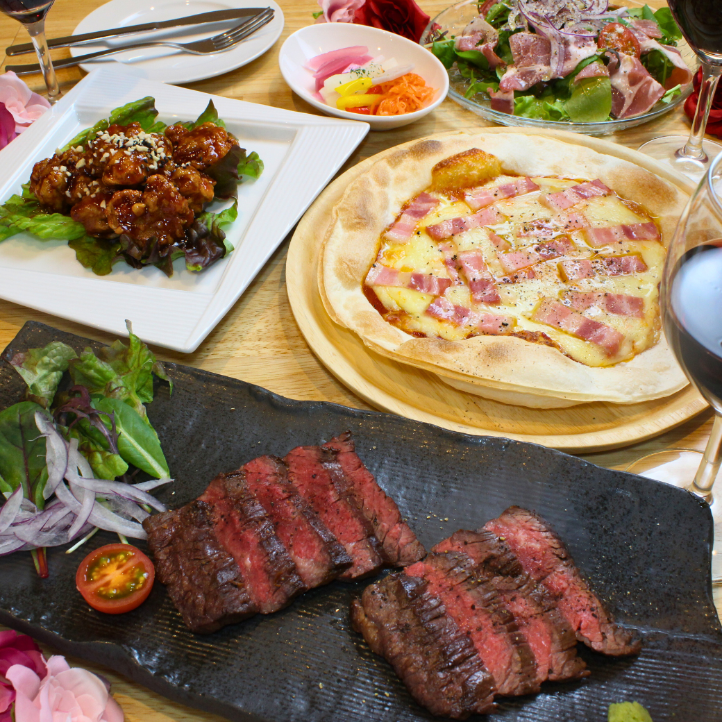 まだお互いよく知らない関係でも、テーブルに分厚い「国産牛ステーキ」が運ばれてくると、パッと場が華やぐから不思議。
